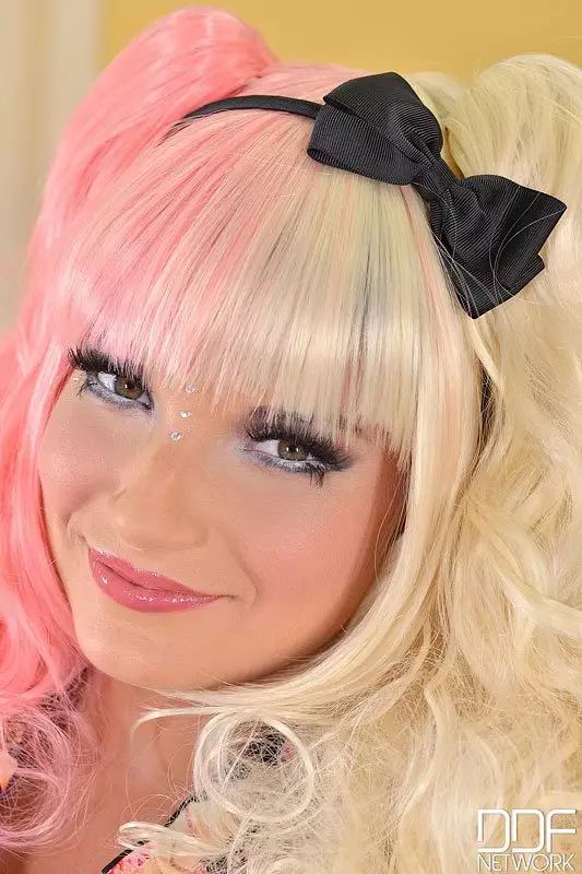блондинка Anita Bellini в соблазнительном костюмчике вставляет свои пальчики так глубоко в свою пизду, насколько может — Anita Bellini