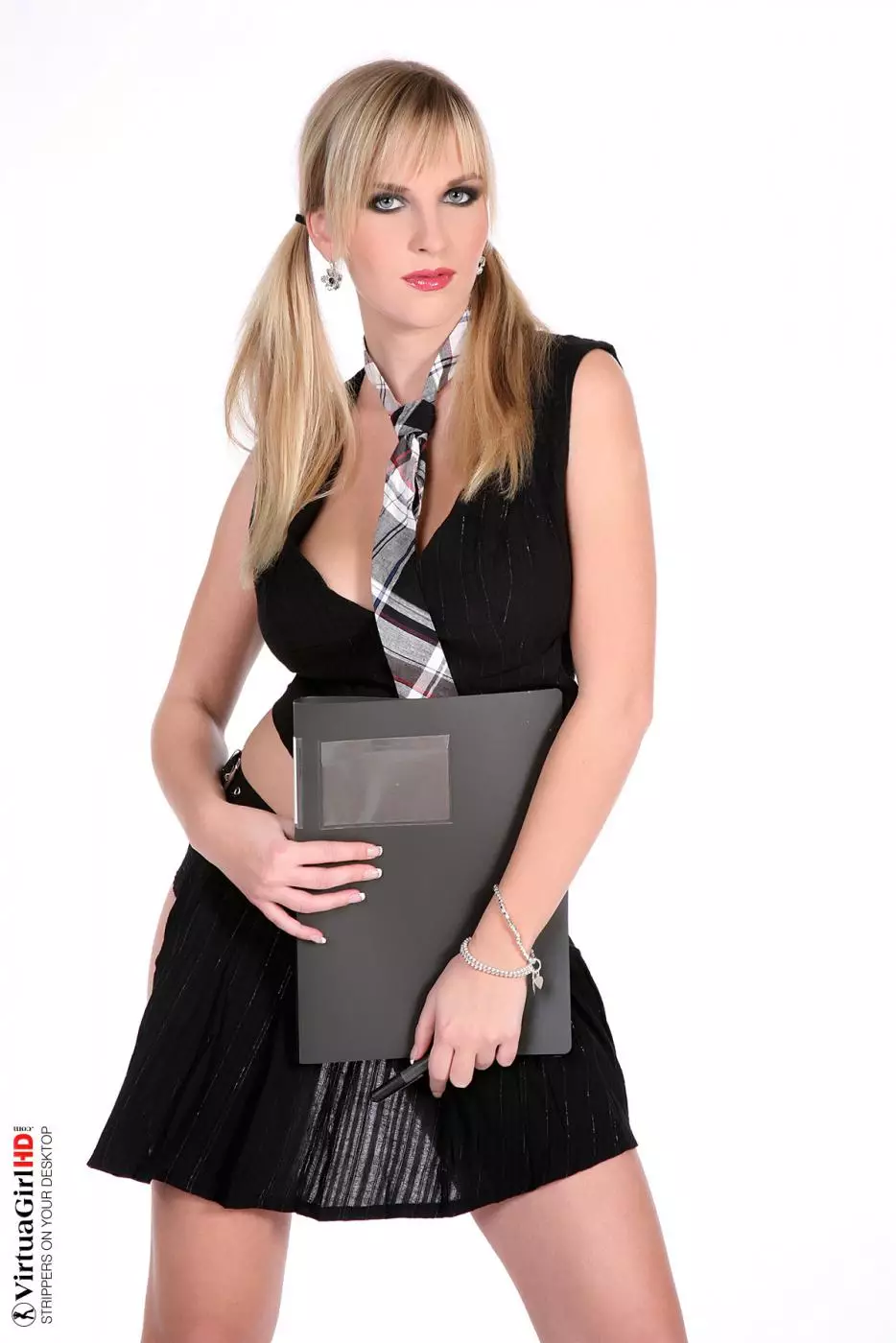 Грудастая блондинка Cikita медленно раздевается и остается в галстуке на груди — Cikita