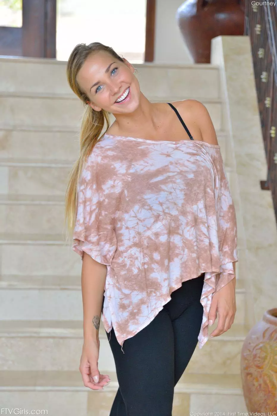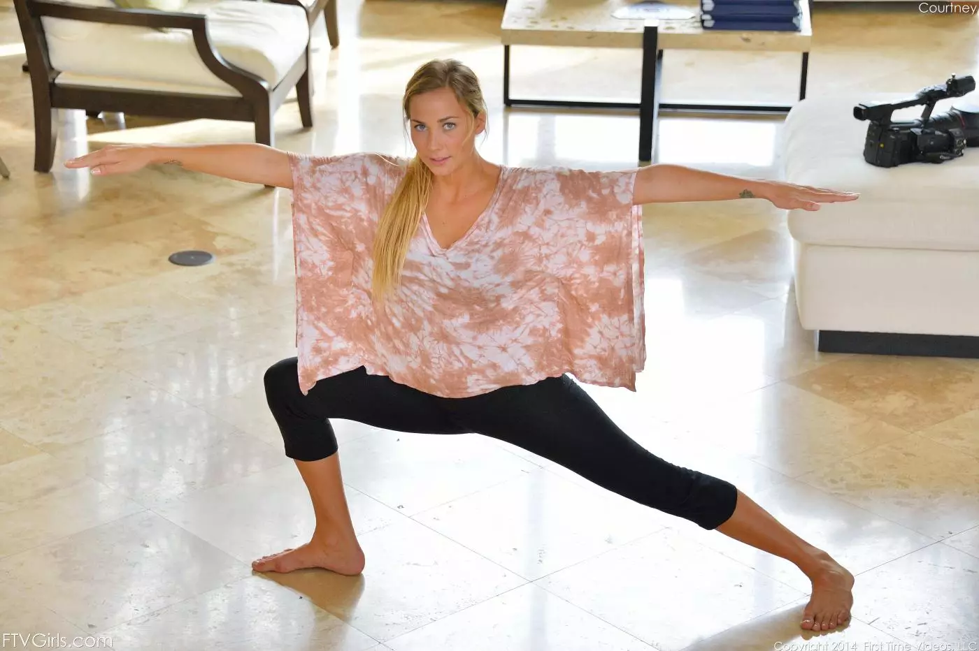 Во время занятий йогой знойная блондинка Courtney Dillon показывает грудь и киску — Courtney Dillon