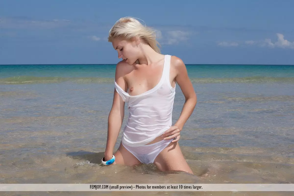 Холодная вода неимоверно возбуждает блондинку Cristina A в этой популярной фотогалерее — Cristina A