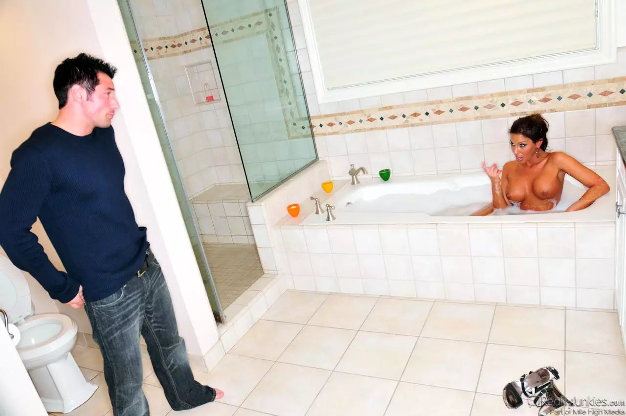 Нахальная мамочка Adrianna deVille занимается сексом и трет член между больших грудей, доводя до оргазма — Adrianna deVille