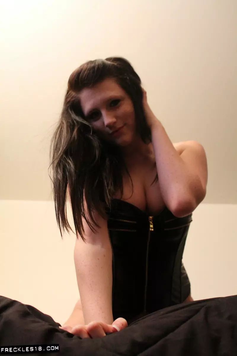 Игривая брюнетка Freckles эротично тискает свою грудь перед камерой — Freckles