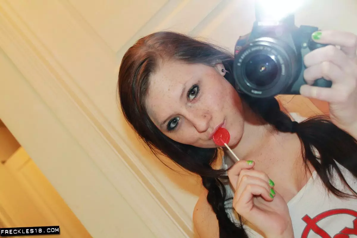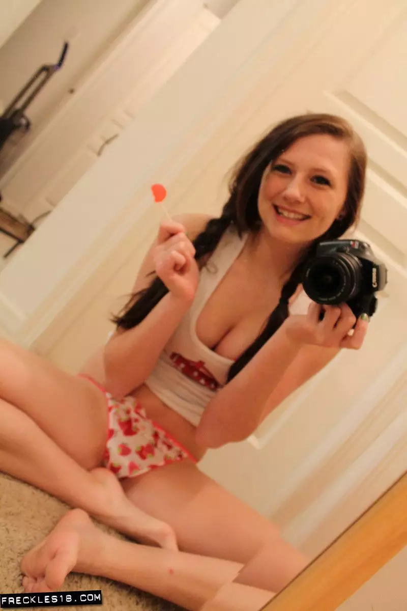 Знойная детка Freckles показывает свою киску и попку через трусики — Freckles