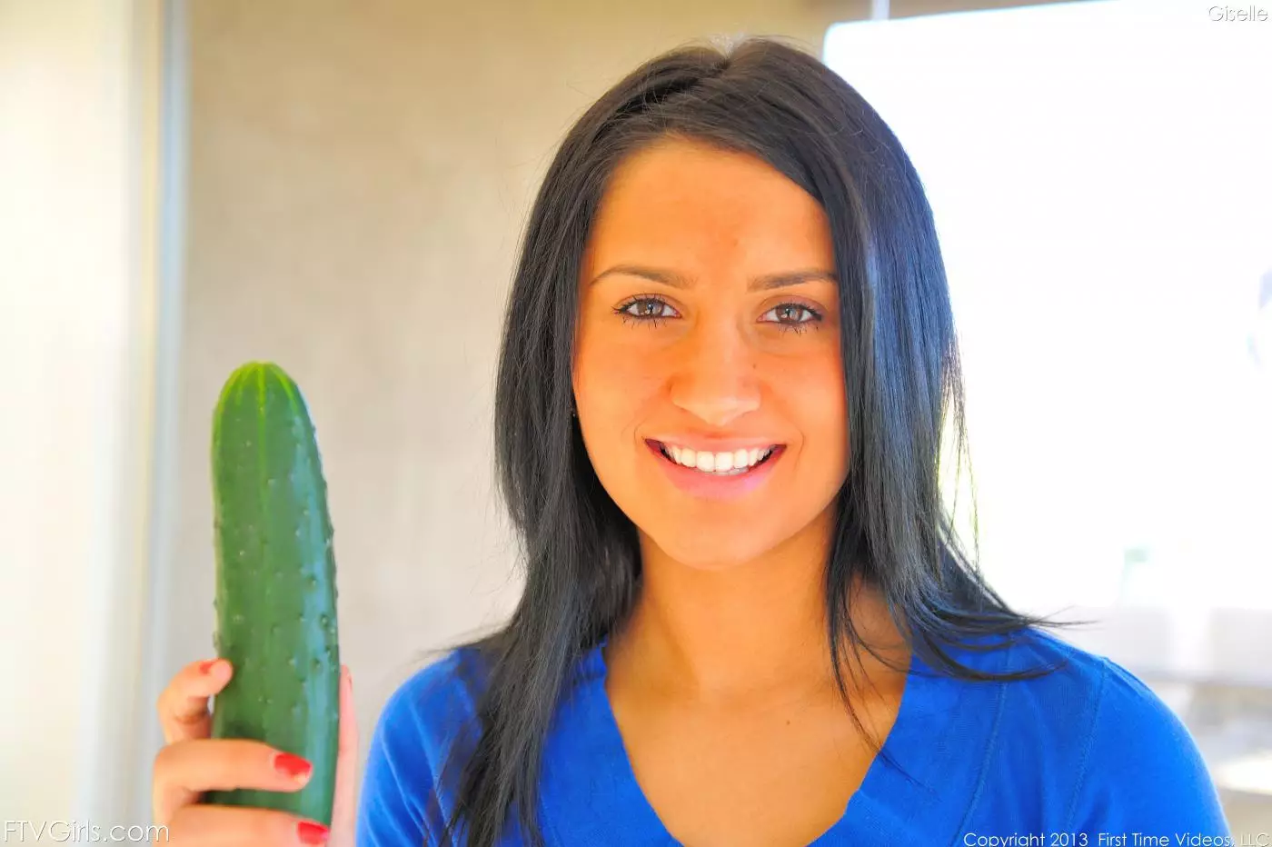 Знойная латина Giselle Mari трахает свою подростковую киску большим огурцом и получает оргазм — Giselle Mari
