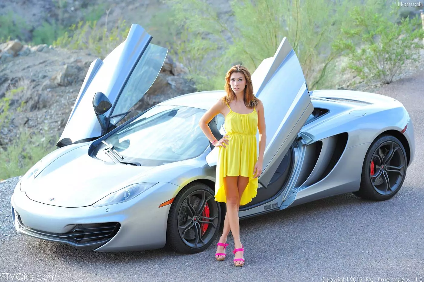 Соблазнительная молодуха Hannah Reilly позирует рядом с машиной — Hannah Reilly
