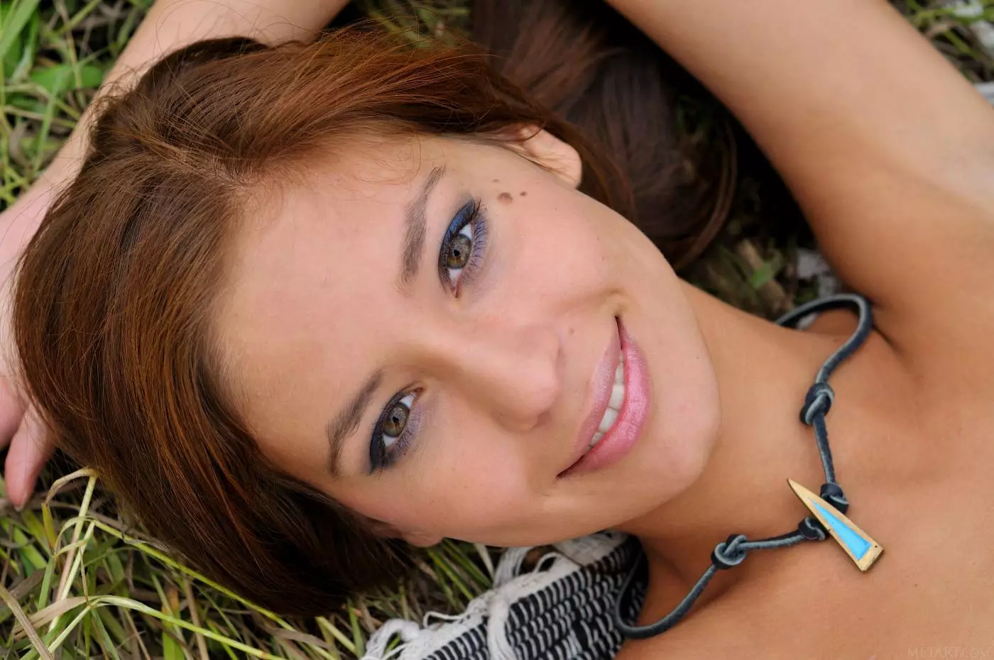 Знойная брюнетка Irina J вертится на лугу, показывая свое голое тело со всех сторон — Irina J