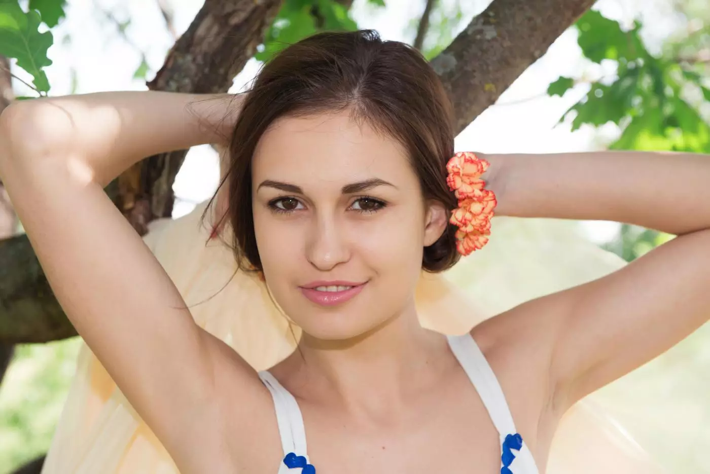 Нимфа-брюнетка Lilian A снимает одежду на природе и показывает чувственное тело — Lilian A