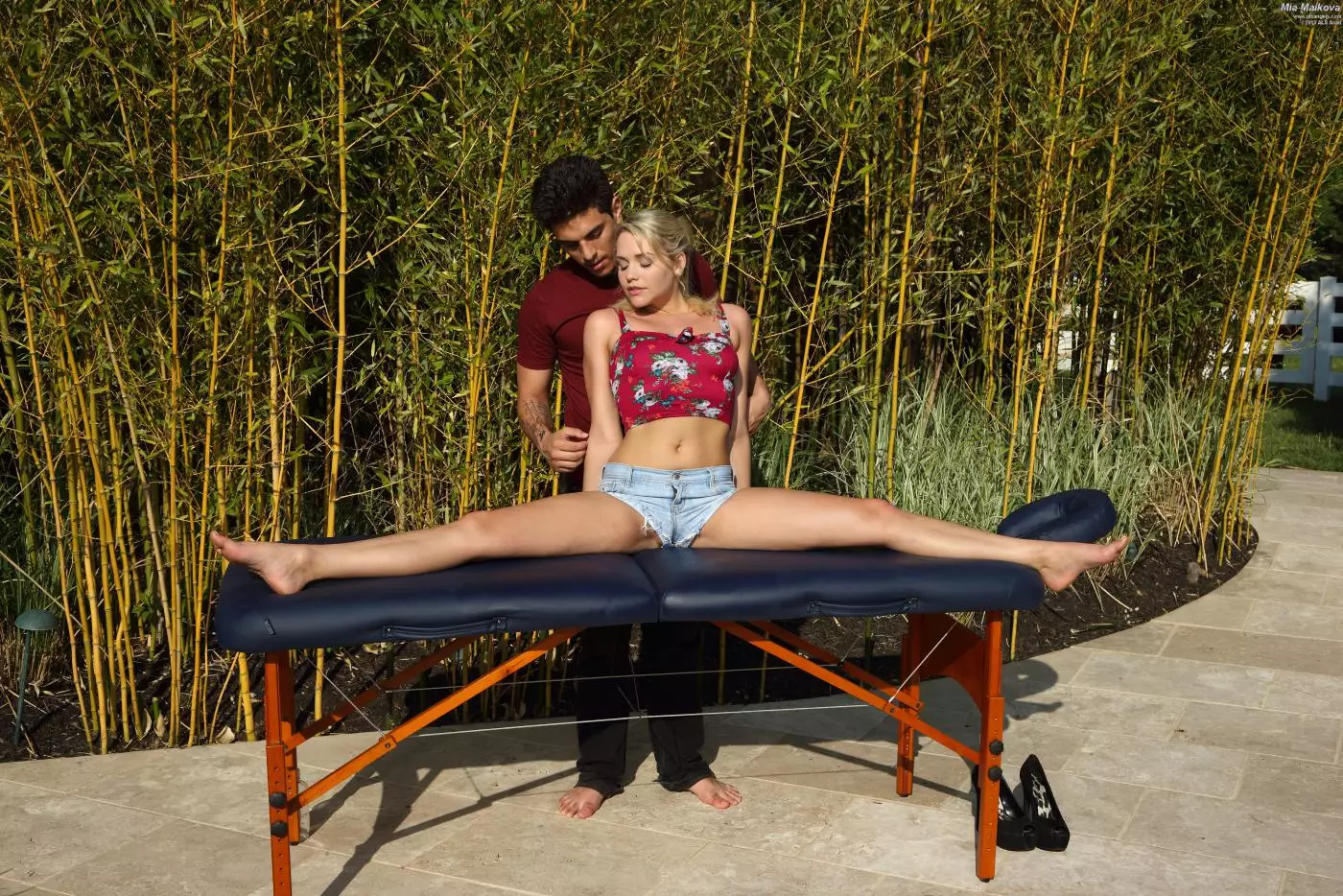 Светловолосый ангелочек Mia Malkova наслаждается массажем и трахом при помощи секс-машины на массажном столе — Mia Malkova