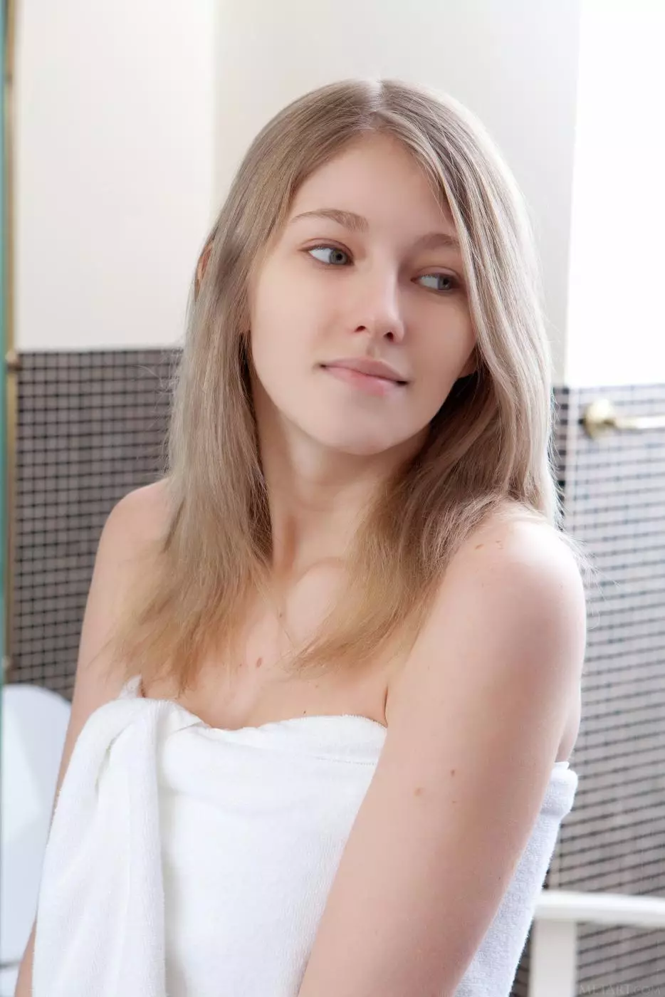 Прекрасная блондинка Mila I показывает свои прекрасные торчащие сиськи и очень сильно возбуждает — Mila I