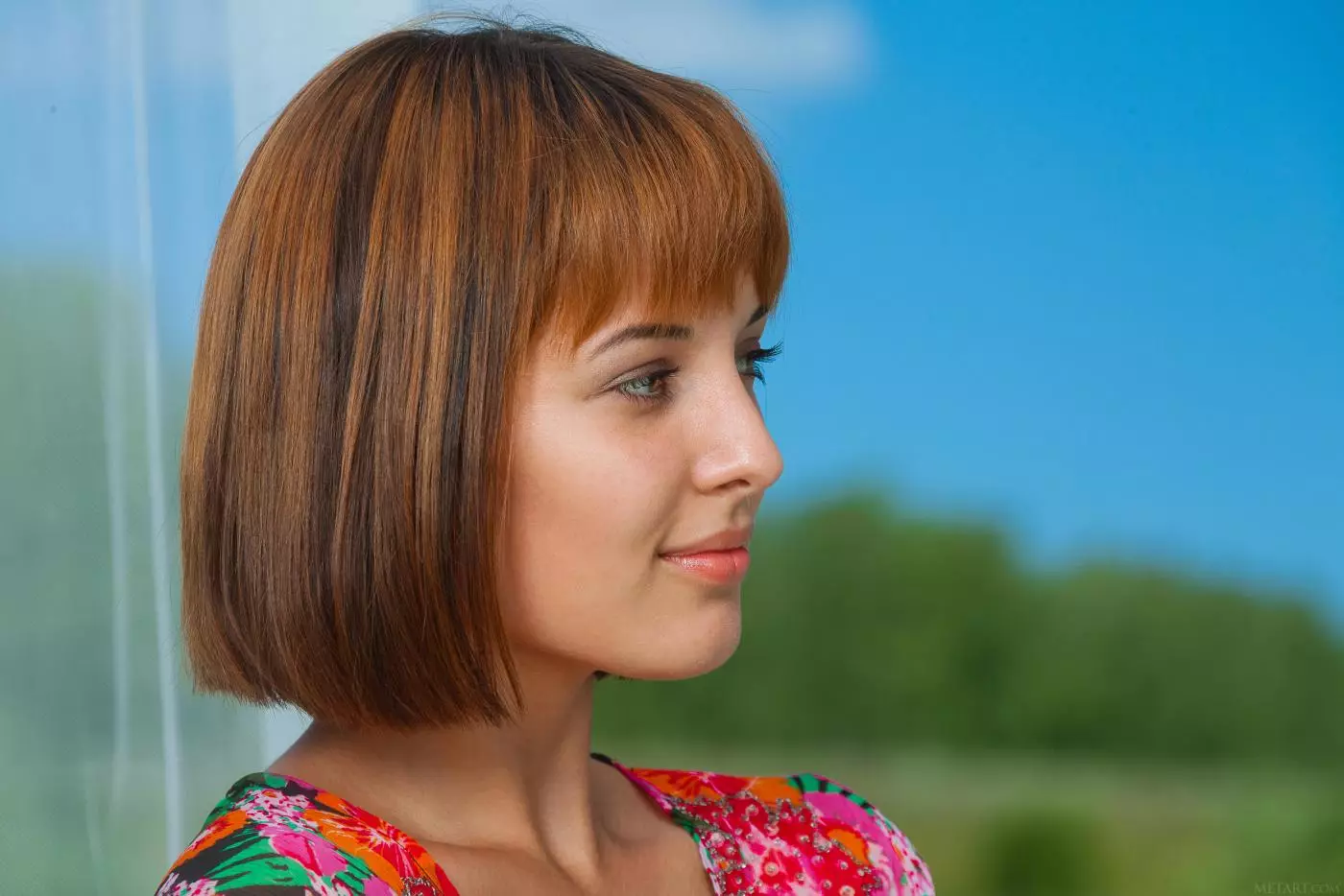Красивая брюнетка Monika G снимает свое цветастое платье и показывает бритую щелку — Monika G