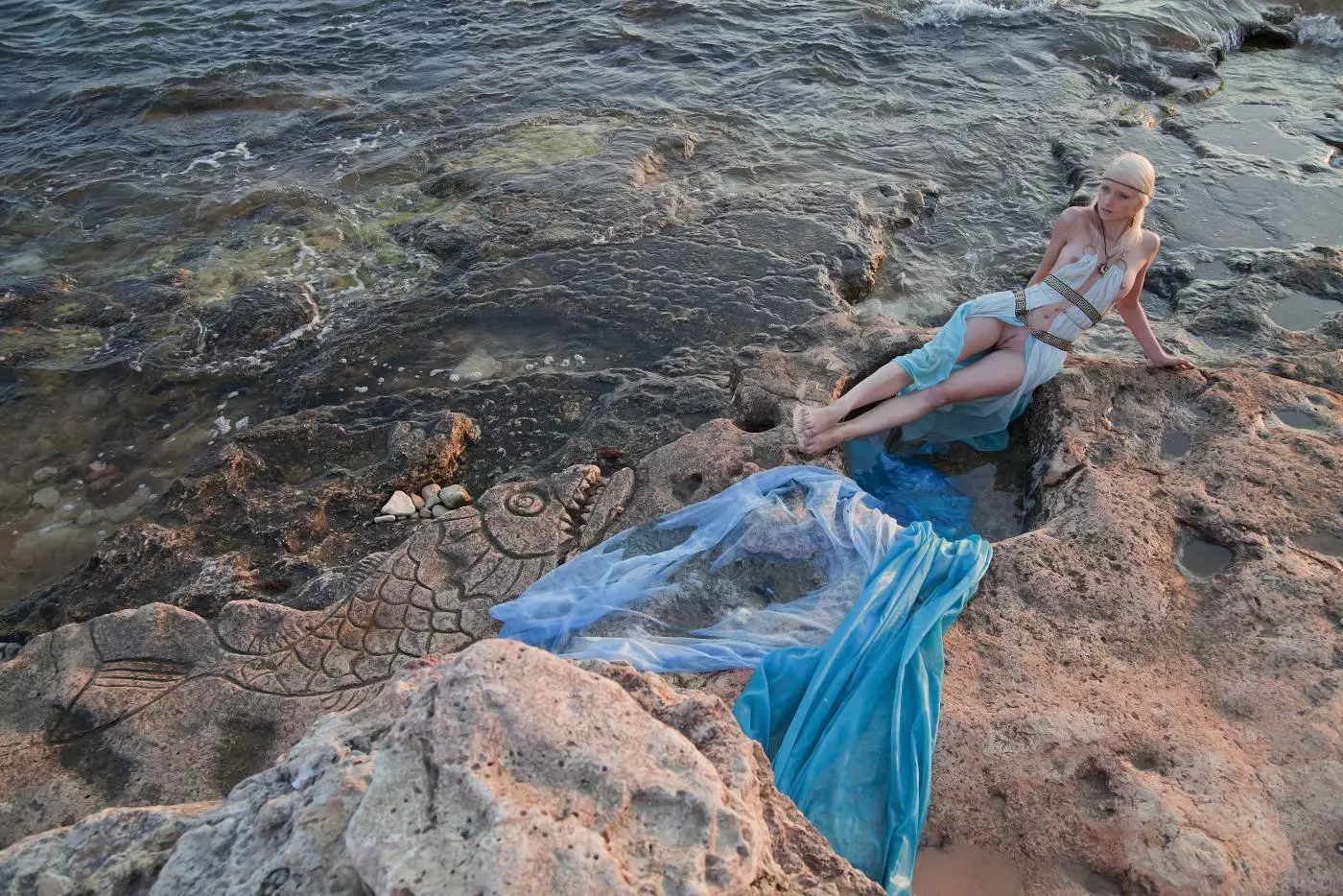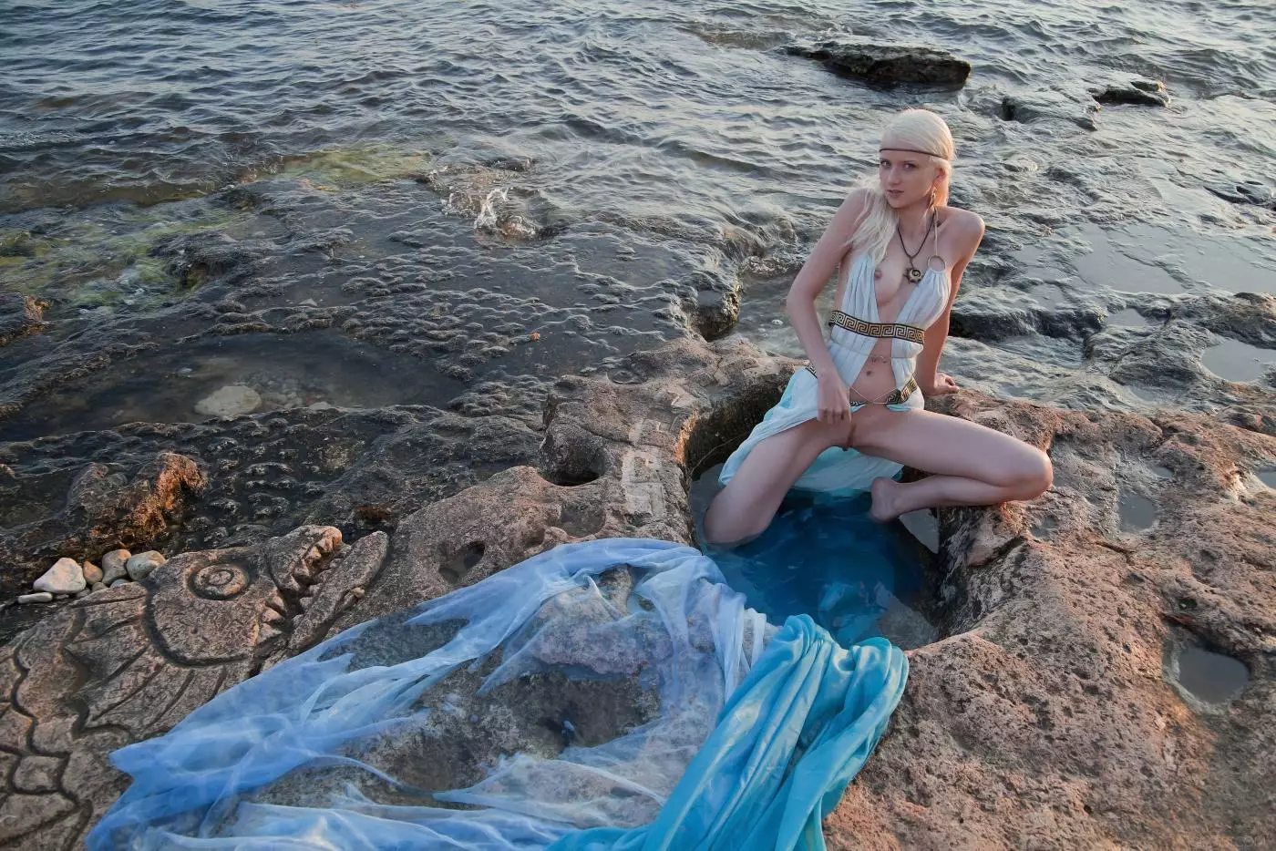 Ангельская малышка Nika N - обнаженная нимфа, позирует возле моря соблазнительно и волнующе — Nika N