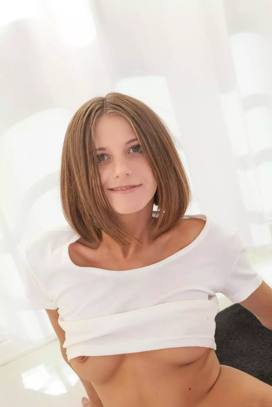 Милая молоденькая брюнетка - Talinka A, показывает свою мокрую киску и соки, вытекающие из нее — Talinka A
