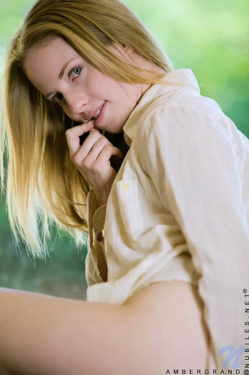 Чудесная юная Amber Grand с розовыми сосочками и в голубых трусиках играет с вибратором — Amber Grand