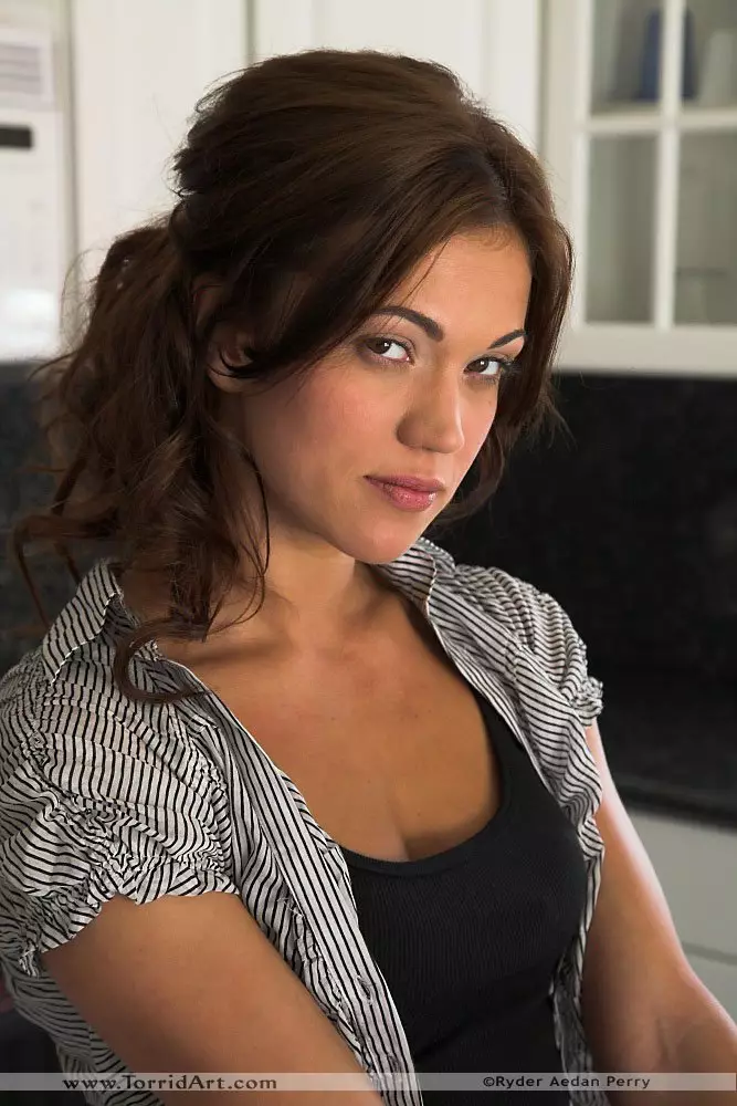 Стройная темноволосая красотка Alyssa Reece стягивает свое красное белье на кухне — Alyssa Reece