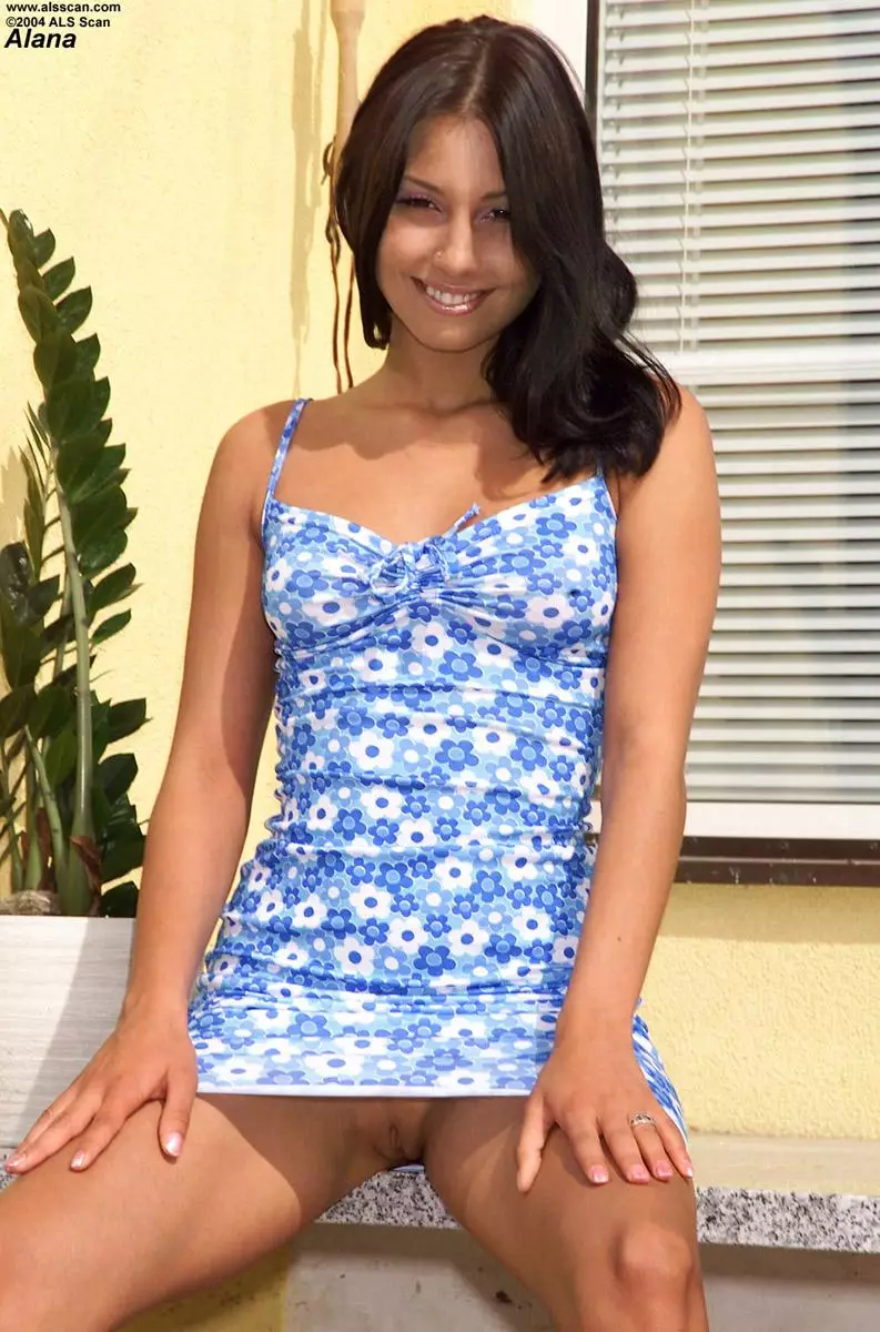 Темноволосая куколка Anetta Keys снимает голубое платье на свежем воздухе, возбуждая своим загорелым телом — Anetta Keys