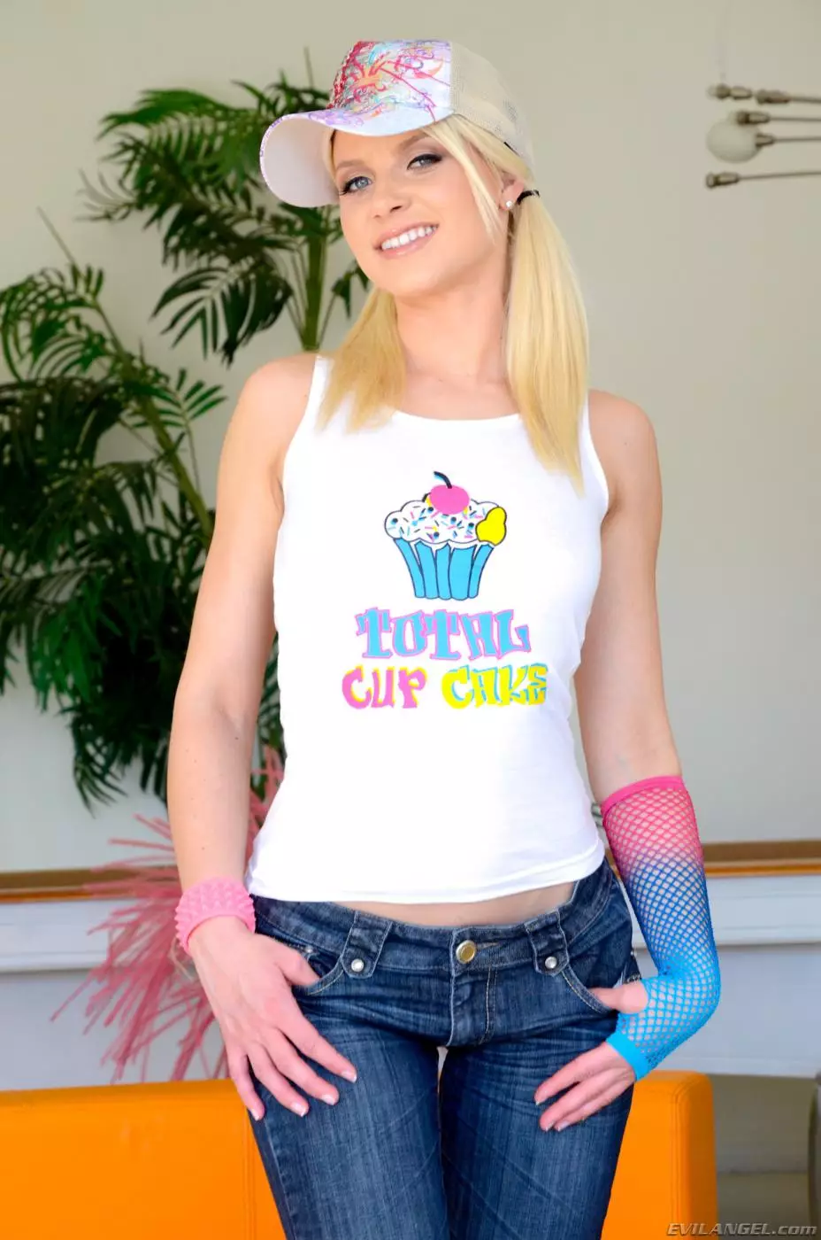 Милашка блондинка Anikka Albrite позирует перед камерой в крохотном топе и узких джинсах — Anikka Albrite