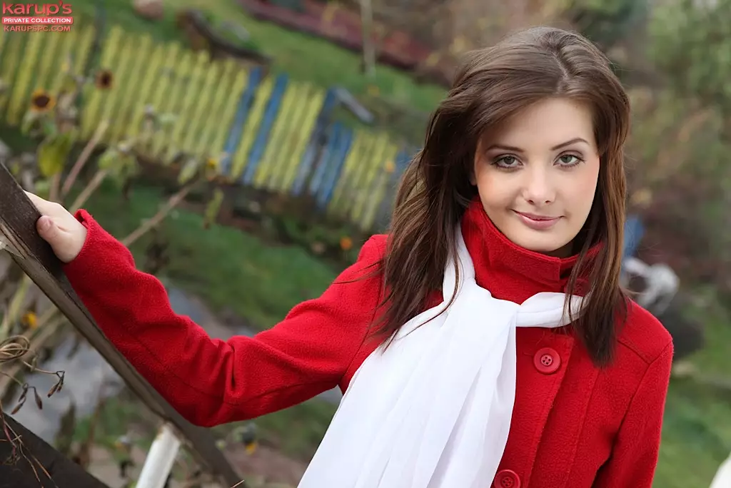 Милашка в красном Anna Tatu раздеваются и демонстрирует свою безволосую тугую киску — Anna Tatu