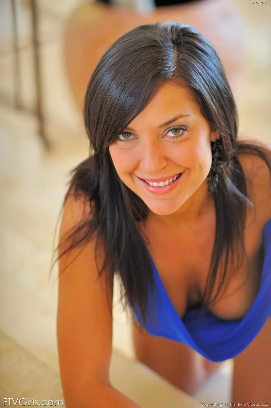 Темноволосая Annalisa Greco позирует в супер-сексуальном синем мини-платье и белье — Annalisa Greco