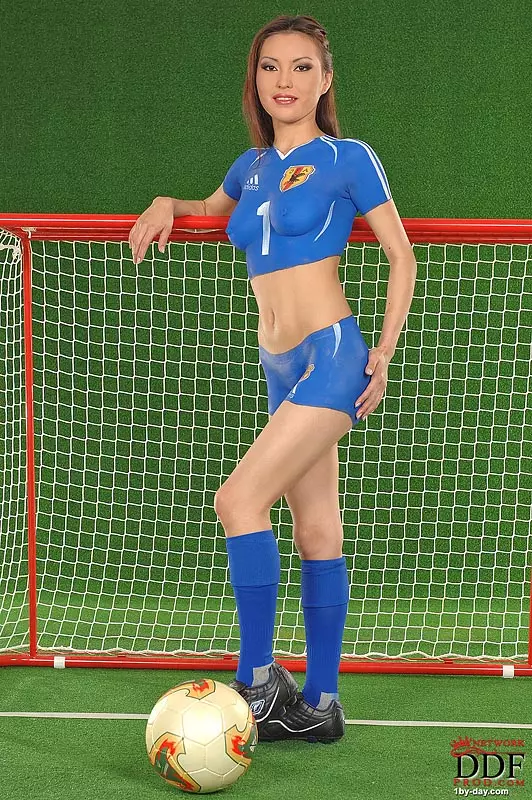 Восточная модель с расписанным телом Annie Ling претендует на то что она оденет тугую футбольную форму — Annie Ling