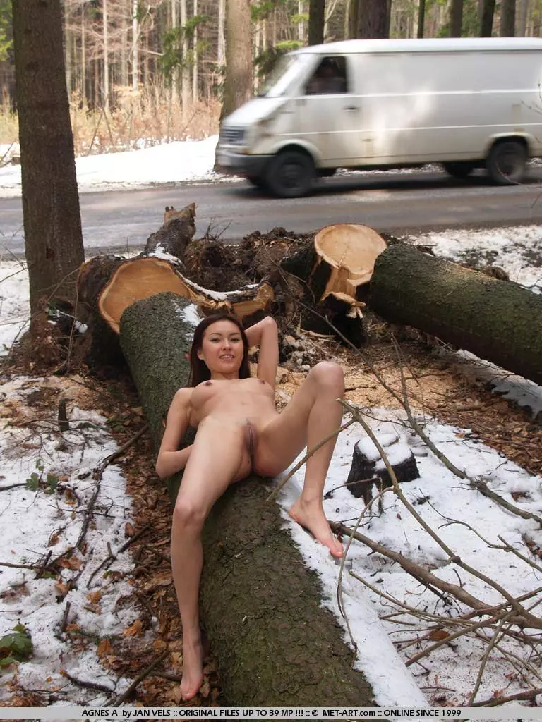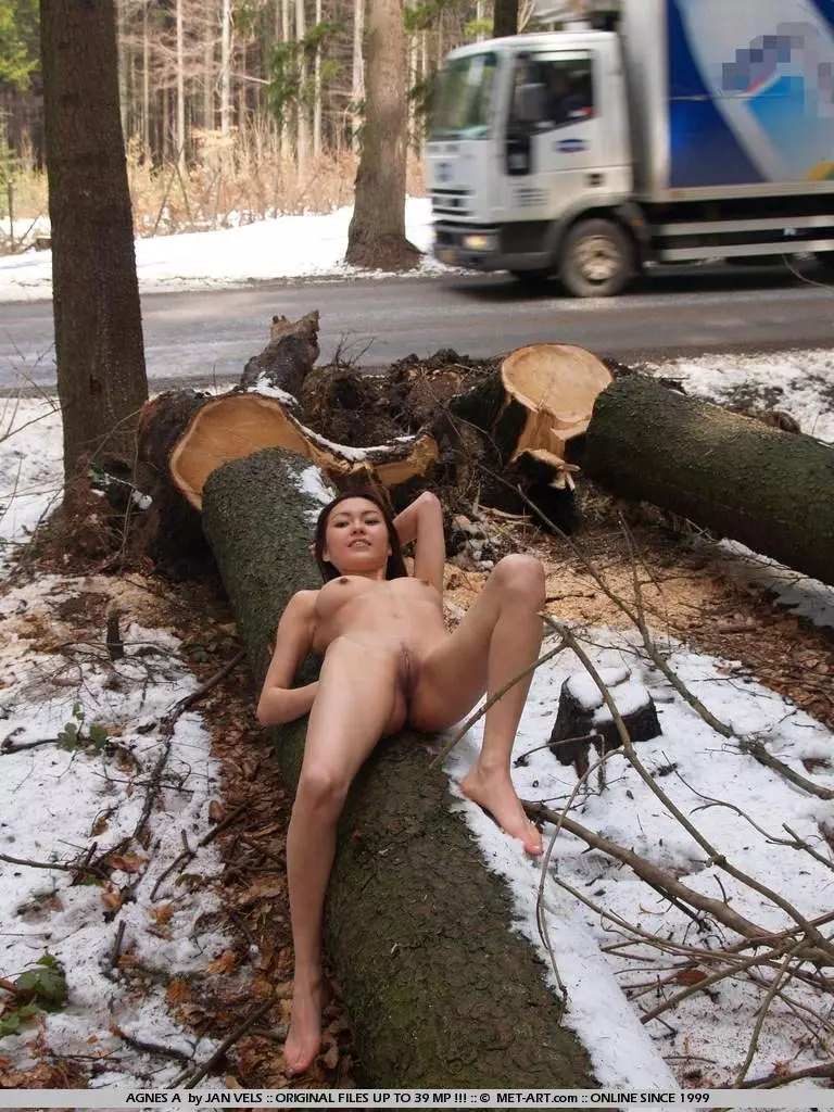 Полностью обнаженная стройная азиатка Annie Ling выставляет на показ свою щелочку на улице в публичном месте — Annie Ling