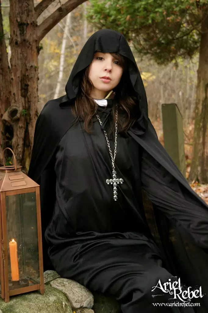 Капризная малолеточка Ariel Rebel одетая в черное, засветила свою лысую киску на открытом воздухе — Ariel Rebel