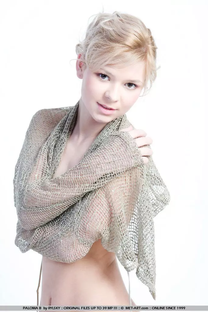 Бледная блондинка Audri Nubiles снимает бежевую тунику и сексуально позирует — Audri Nubiles