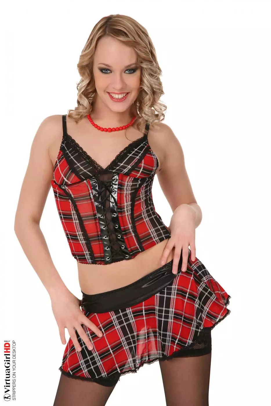 Девушка в чулках и форме Blue Angel сорвала малюсенькие трусики-танго со своей жаркой киски — Blue Angel