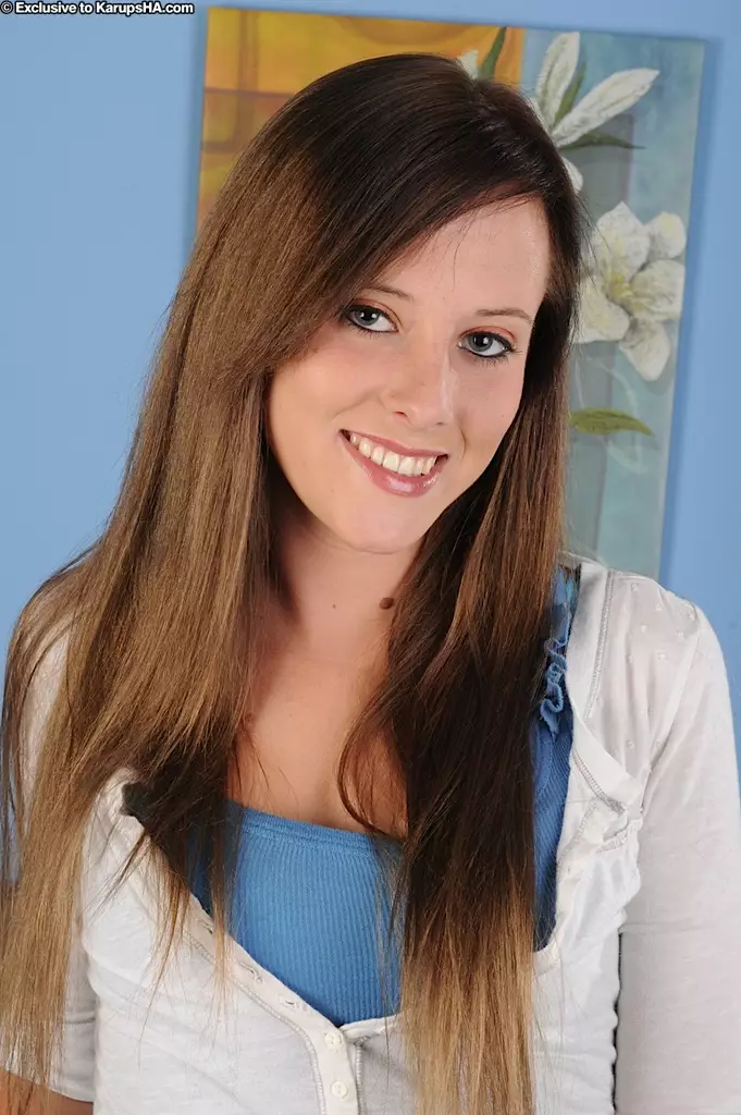 Миниатюрная кошечка Callie West снимает шортики и трусики чтобы показать свою конфетку — Callie West