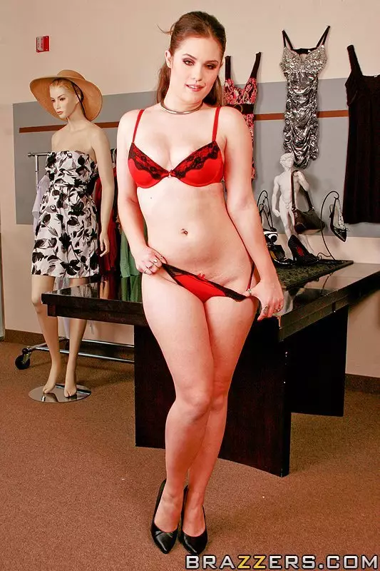 Крутая Charlotte Vale одетая в красное и черное дает в жопу в магазине одежды — Charlotte Vale