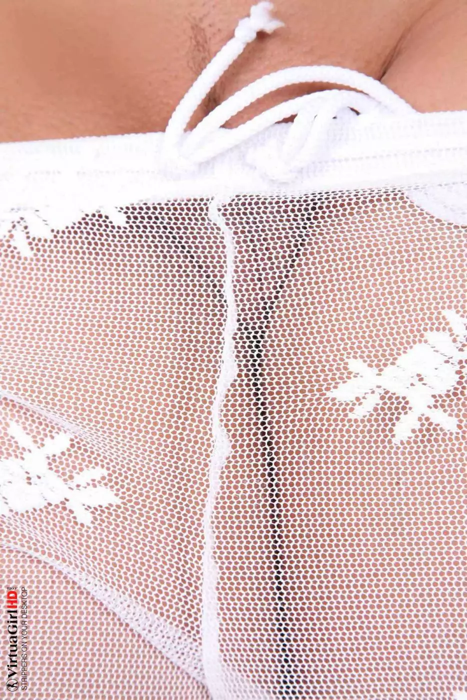 Грудастая брюнетка в красивых белых чулках Cindy Dollar играет со своей очаровательной грудью — Cindy Dollar