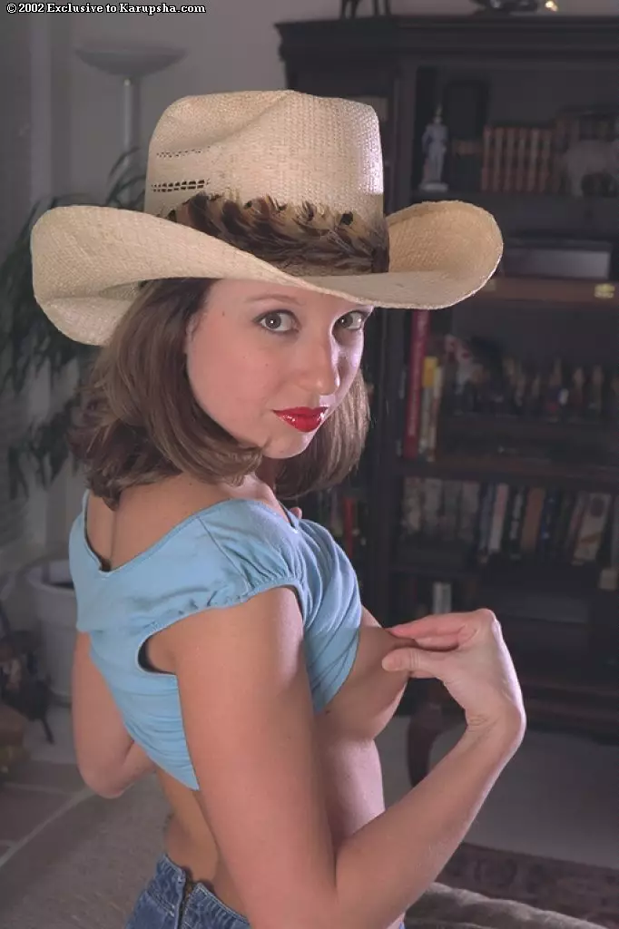Кокетливая Crystal Marie в шляпе носочках выставляет маленькие сиськи и волосатую манду — Crystal Marie