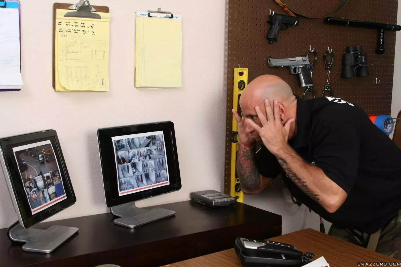 Служанка с голубыми глазами брюнетка Diana Prince в сапожках на высоких каблуках продырявлена охранником — Diana Prince