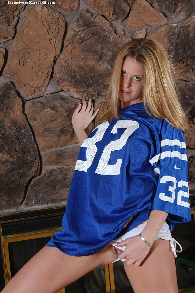 Грудастая красотка в шляпе Ebin Emerson скинула голубые кружевные трусики у камина — Ebin Emerson