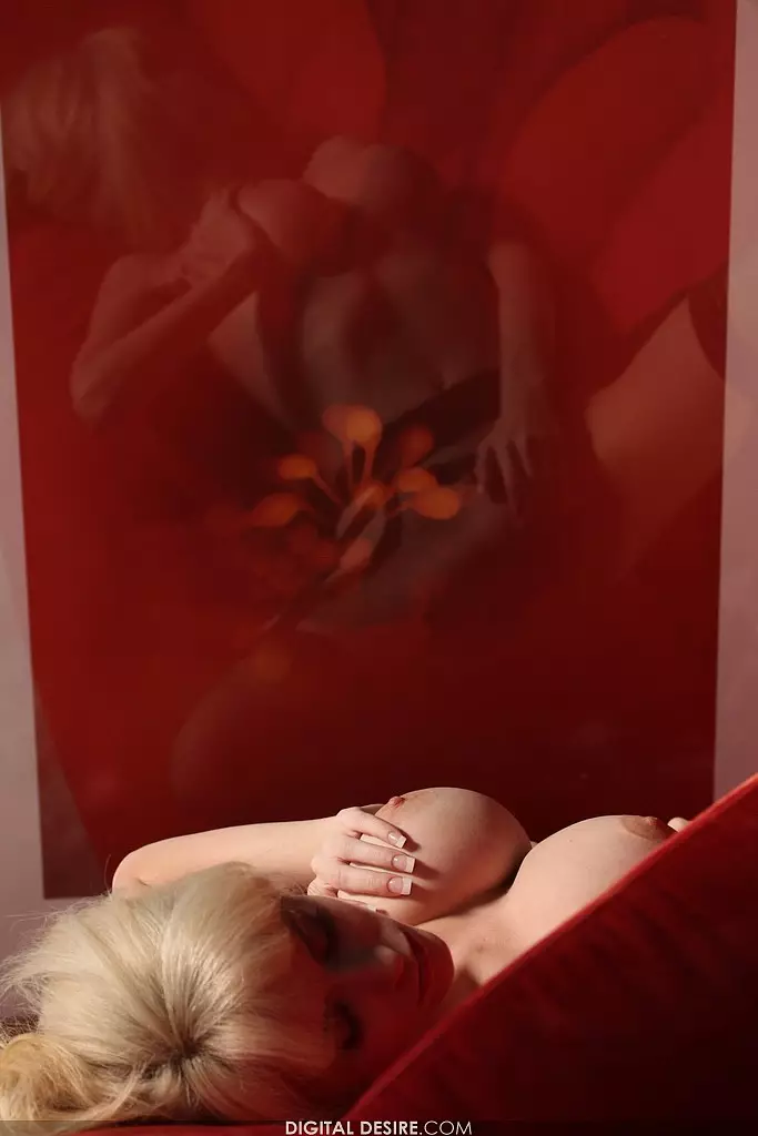 Блондинка с большими дыньками в чулках Emily Addison снимает свое красивое черное белье — Emily Addison