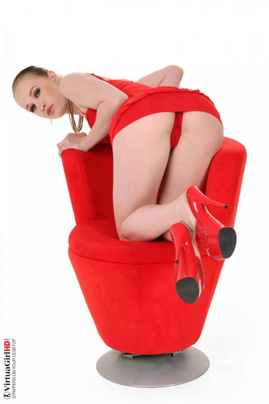 Блистательная темноволосая малолетка в красном Emma Pearl трет нежную половую щель — Emma Pearl