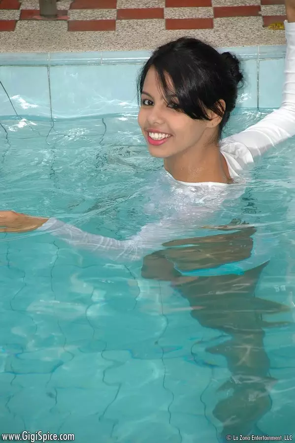 Gigi Spice позирует в белом мокрых топике и трусиках после плавания в бассейне — Gigi Spice