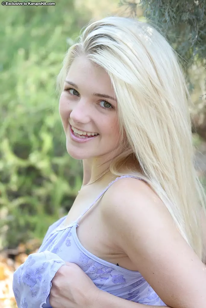 Ангелоподобная юная блондинка Holly Van Hough с милым В-размером груди и чистой киской позирует голой на улице — Holly Van Hough