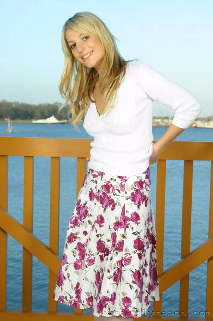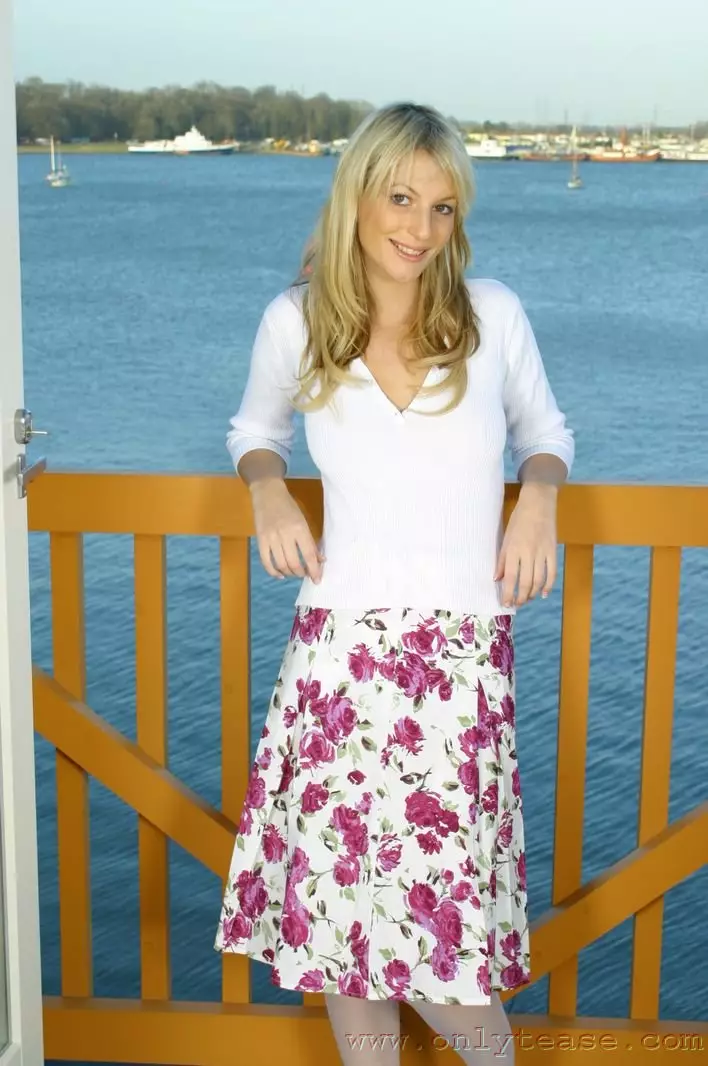 Милая блондинка в белых чулках Jamie C снимает верх, наслаждаясь видом на бухту — Jamie C