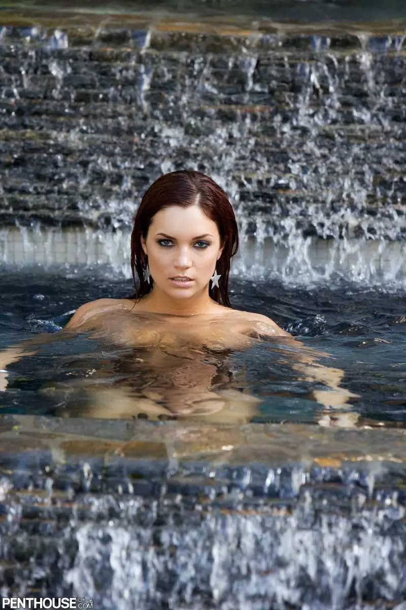 Шикарная малышка с мокрыми рыжими волосами Jayden Cole позирует обнаженной в бассейне и около него — Jayden Cole