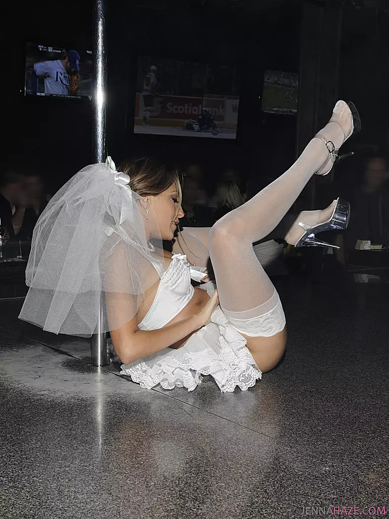 Длинноногая малышка в белых чулках - Jenna Haze, раздевается и показывает свою киску в переполненном стрип-баре — Jenna Haze