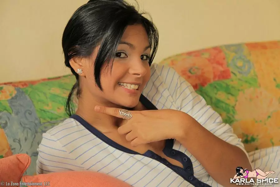 Латинка с волнистыми волосами Karla Spice разделась до трусиков и показала маленькие прелести — Karla Spice