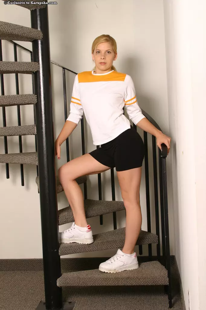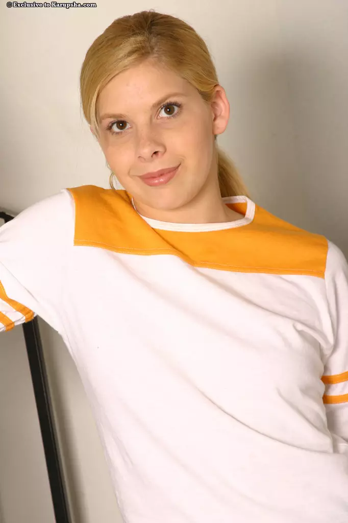 Свежая блондинка Kinzy Jo позирует голой дроча пальчиками свою выбритую киску после стриптиза — Kinzy Jo