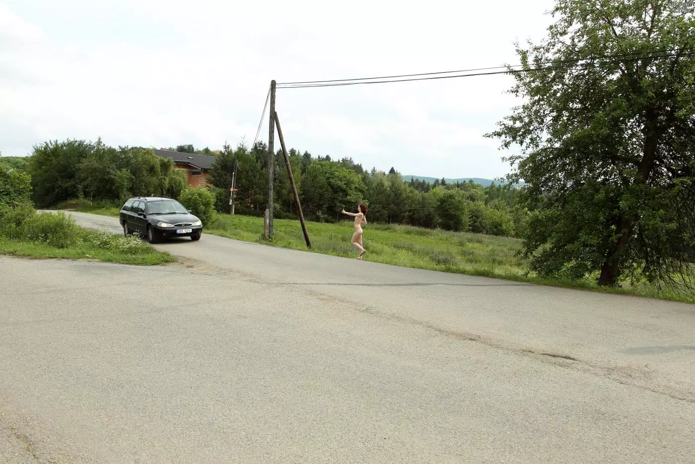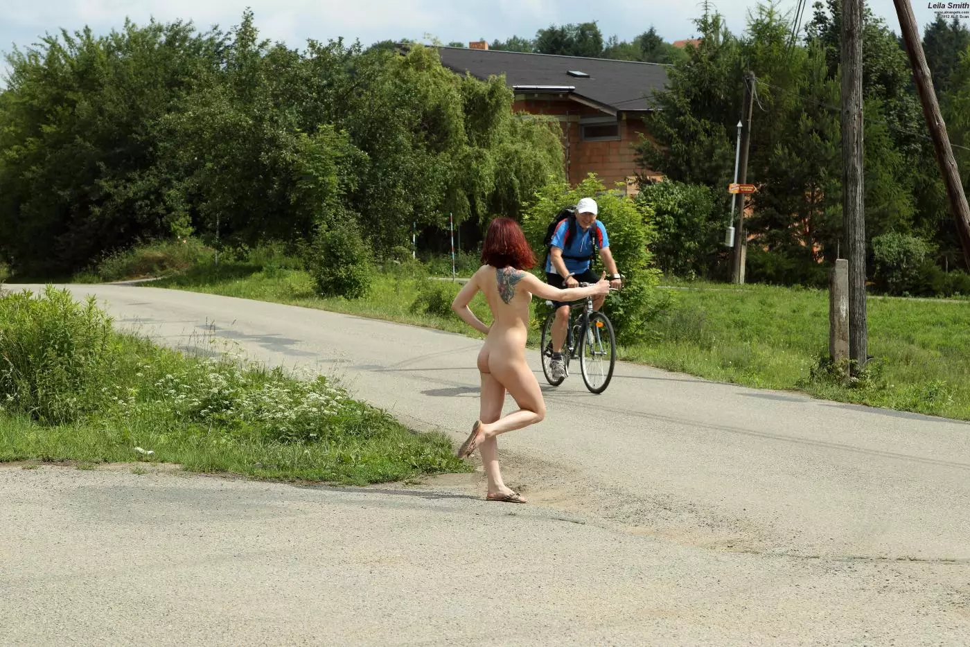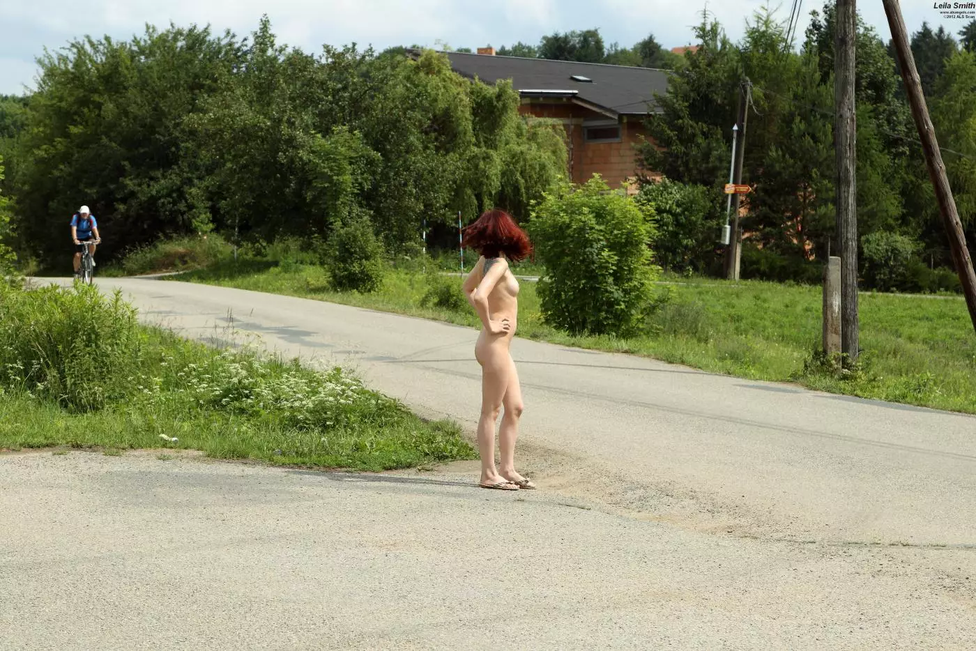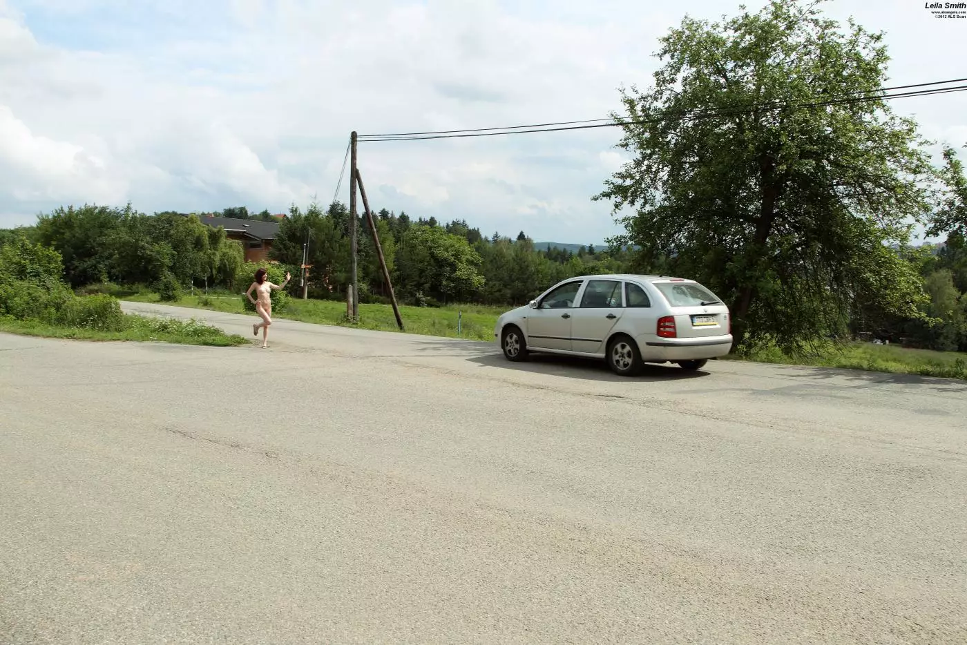 Полностью обнаженная брюнеточка Leila Smith просто обезумела! Она ходит по улице и пытается поймать машину — Leila Smith