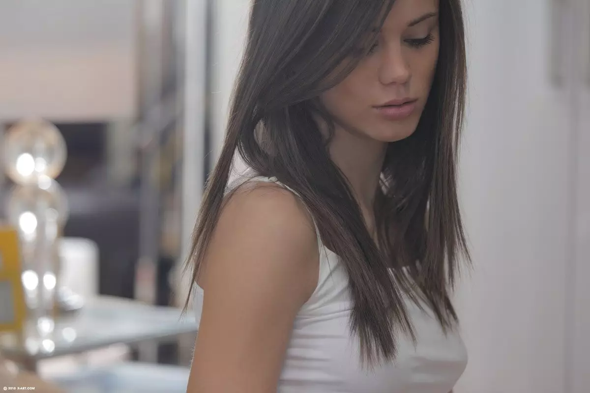 Брюнетка-подросток Little Caprice снимает белые трусики и трахает свою узкую киску дилдо — Little Caprice