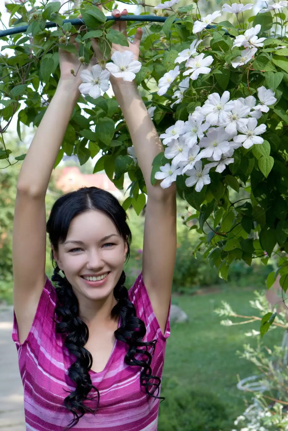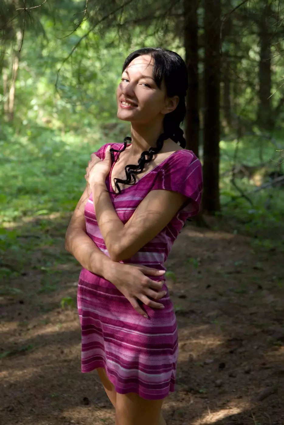Крутая брюнетка Loreen A садится на траву и показывает киску — Loreen A