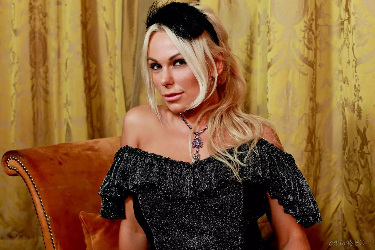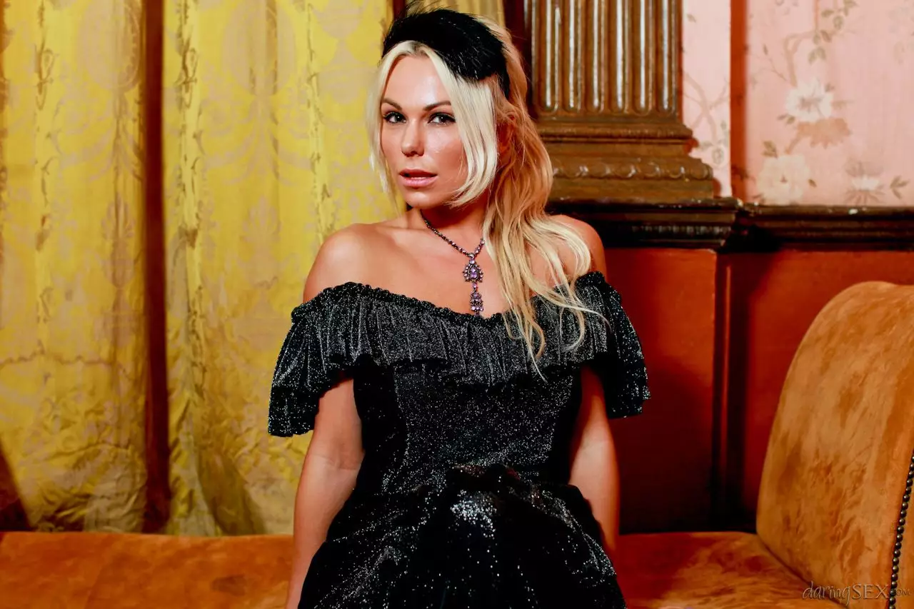 Роскошные детки в длинных платьях Louise Jenson и Caprice Jane показывают чулки и целуются — Louise Jenson