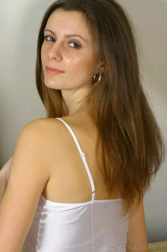 Милая детка в белых чулках Martina Onlytease стягивает ночнушку, чтобы показать возбуждающую грудь — Martina Onlytease