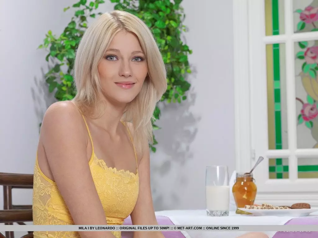 Оставив свои ножки широко раздвинутыми, эта блондинка Mila I возбуждает зрелищем своего голого лобка — Mila I