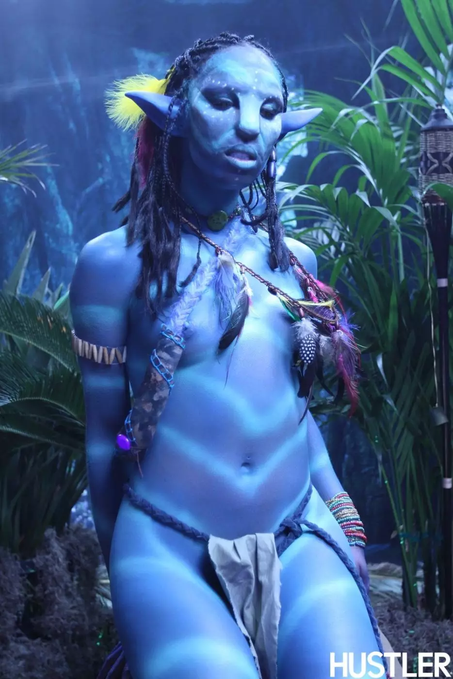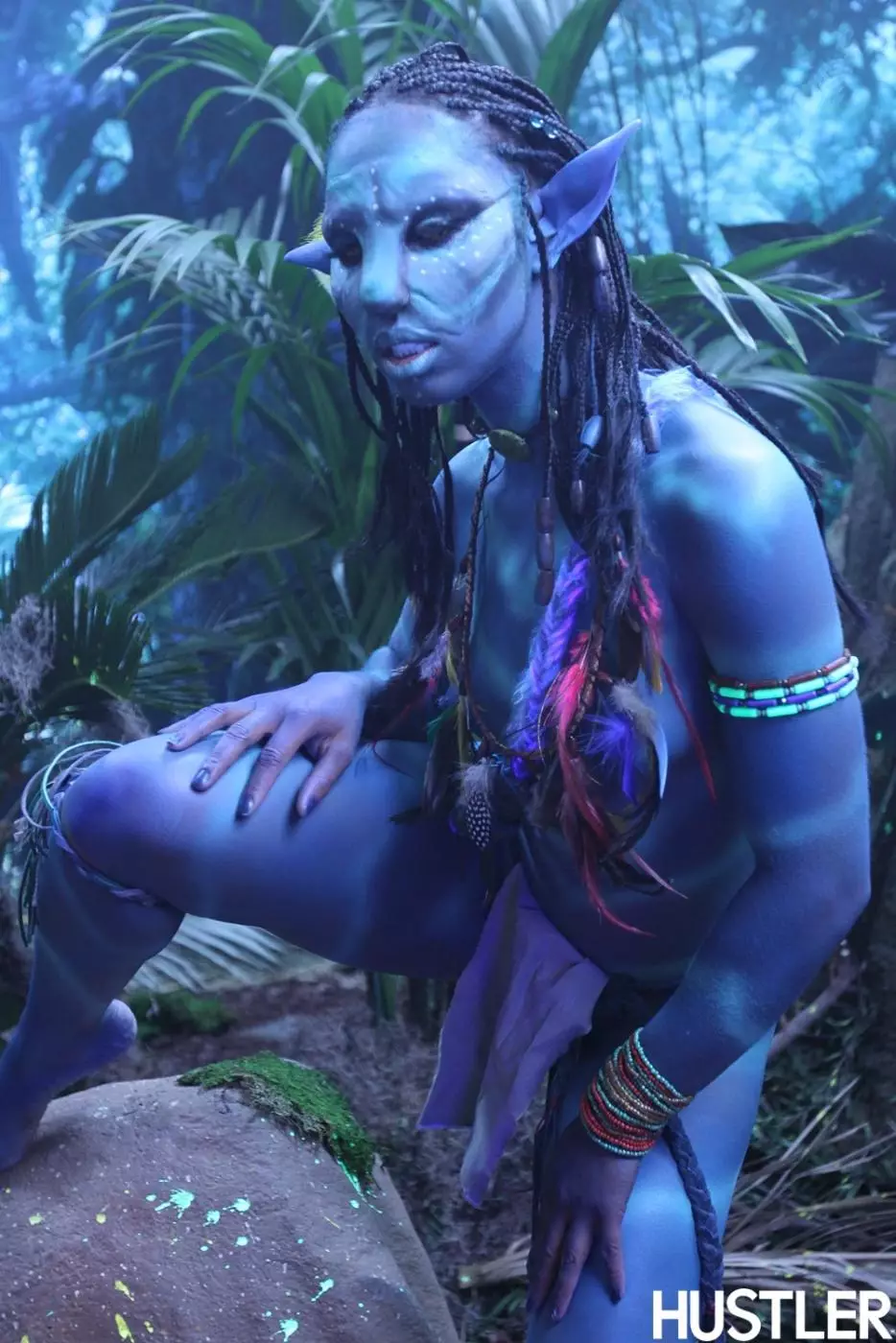 Misty Stone в роли девушки из "Аватара", показывает стоячую грудь и синюю киску — Misty Stone
