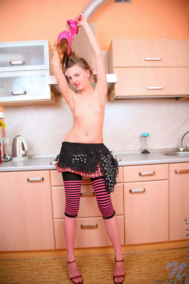 Малолетняя шалава в юбочке Naney Nubiles снимает лосины и показывает пизду — Naney Nubiles